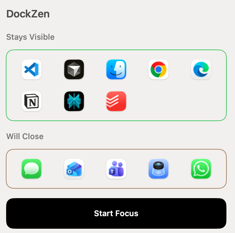 I am a product manager at Microsoft. I wanted a simple way to avoid dock clutter when I’m in a flow state.